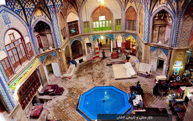همانند دیگر شهرها، کاشان نیز دارای بازار بسیار زیبایی است. در این بازار سنتی، ساختمان های تاریخی زیادی نیز وجود دارد. این بازار از خیابان بابا افضل کاشان آغاز شده و تا نزدیکی دروازه دولت ادامه دارد. بناهای موجود در بازار تاریخی کاشان عبارتند از کاروانسرای میرپنج، مسجد میدان میرعماد، تیمچه صباغ، تیمچه معروف امین الدوله، حسینیه سوراخ ریسمان و چندین بنای دیگر. در این بازار جمعی از اصناف مختلف را خواهید دید، مانند بخش های مسگری، کفاشی، رنگرزی، زرگری، بزازی و خیاطی.